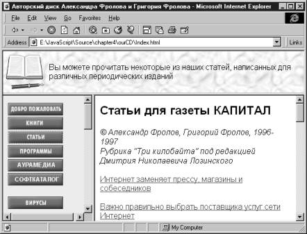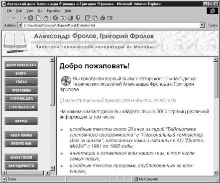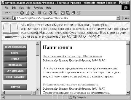 Отображение нескольких документов HTMLНа рис. 4.2 мы показали внешний вид содержимого нашего авторского компакт-диска, первый выпуск которого появился недавно в продаже.