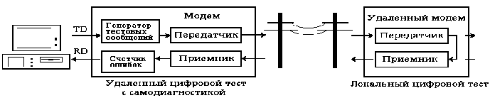 По команде &T8 - локальный аналоговый тест с самодиагностикой. При этом модем сам генерирует тестовые сообщения и подсчитывает число ошибок.