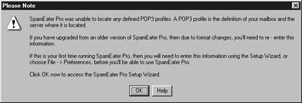 Рис. 6-13. Сообщение о необходимости определения параметров сервера POP3 Щелкните кнопку OK для запуска мастера установки. Первое окно мастера показано на рис. 6-14.